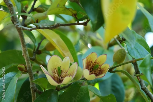 © Honki_Kumanyan, Obraz premium カラタネオガタマの花と蕾