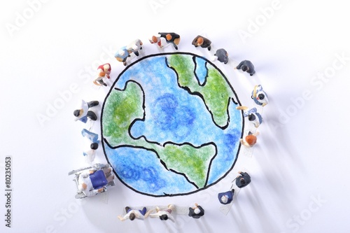 © beeboys, Fototapeta premium 青い地球を見つめる大勢の人々