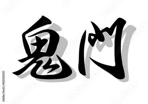 Obraz premium 筆文字,鬼門,行書,毛筆,墨,影,