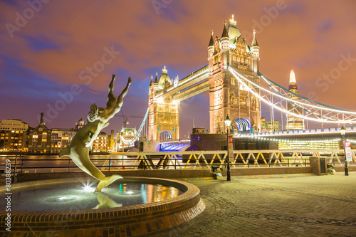 © pespiero, Obraz premium イギリス 夜のライトアップされたロンドンブリッジ