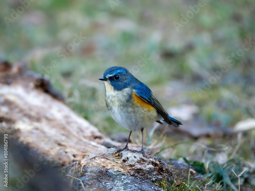 Obraz premium 地面に降りてエサを探しているルリビタキの雄