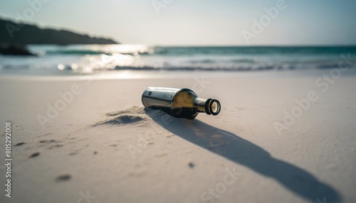 Obraz premium 砂浜に漂着したガラスボトル 美しい青空と海とビーチ