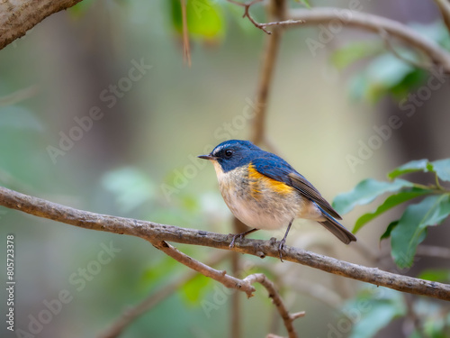 Fototapeta premium 森の中で枝に留まっているルリビタキの雄