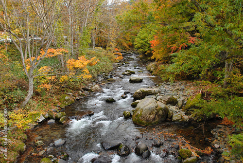 © ASA23, Obraz premium 紅葉に染まる渓谷 みなかみ町照葉峡