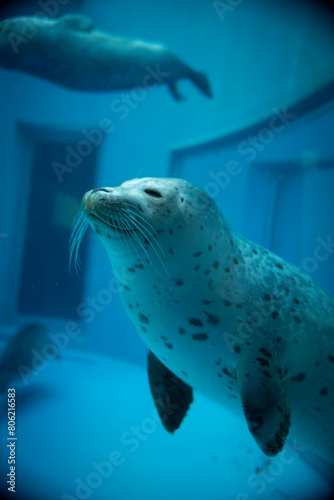 © ANSHIN, Obraz premium 水中で微笑むゴマアザラシ