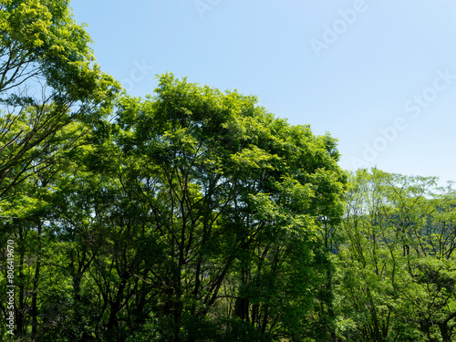 Obraz premium 青空と新緑の樹木