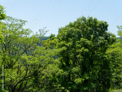 Obraz premium 青空と新緑の樹木