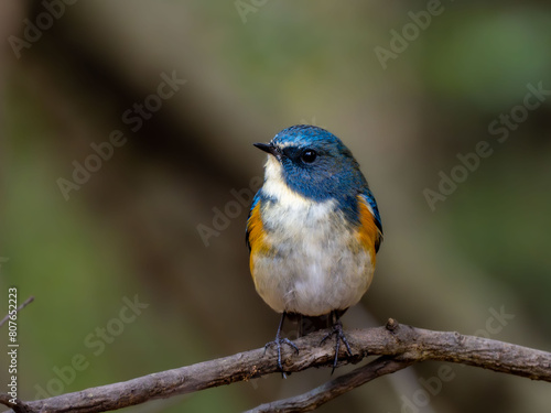 Obraz premium 深い藪の奥でリラックスしているルリビタキの雄