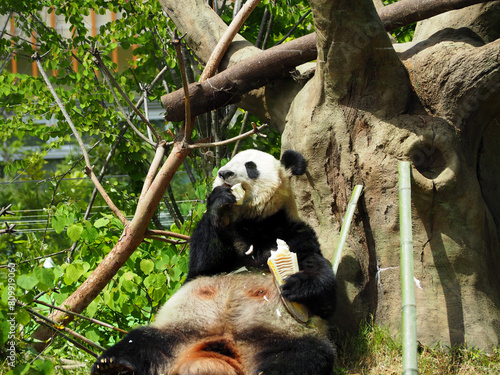 © atsushi, Obraz premium タケノコを食べる動物園のパンダ