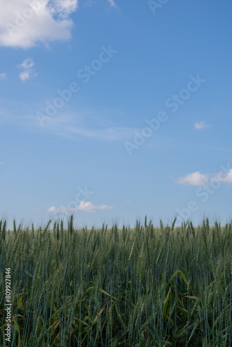 © kinpouge, Obraz premium 緑の麦の穂と青空