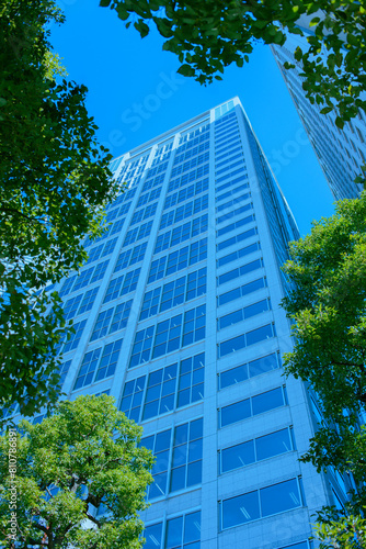 Obraz premium オフィスビル 緑の木