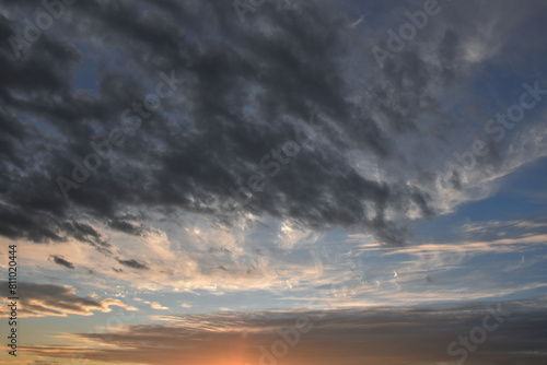 Fototapeta premium 夕方の西の空、いろいろな色の雲