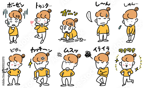 © 真知子 甲斐, Naklejka premium 様々な感情をポーズであらわす女性キャラクターのセット しーん・ガーン・ワクワク