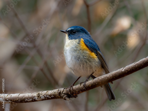 © STOCK THE WORLD, Obraz premium 森の中で枝に留まっているルリビタキの雄