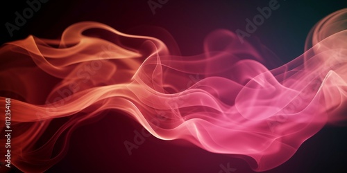 © Queso, Obraz premium 煙や水の中のインクの質感の抽象横長テンプレート。黒背景にピンクとオレンジの流動体