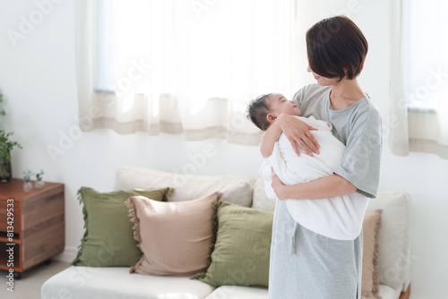 Fototapeta premium 0歳の赤ちゃんを抱っこするママ
