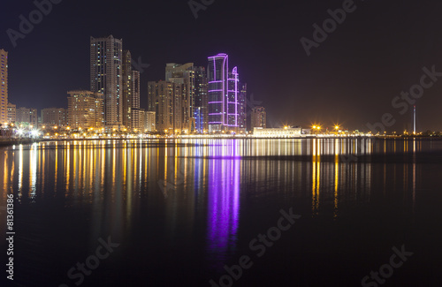 © aphonua, Fototapeta premium Ночной город. Лагуна Халид. Шарджа