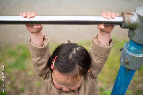Obraz premium 鉄棒にぶら下がる女の子