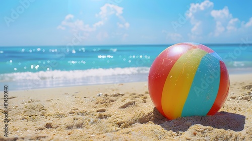 Obraz premium 砂浜に置かれたビーチボール