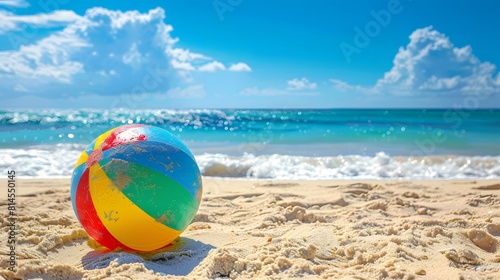 Obraz premium 砂浜に置かれたビーチボール