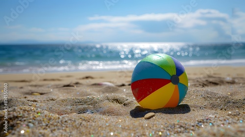 Obraz premium 砂浜に置かれたビーチボール