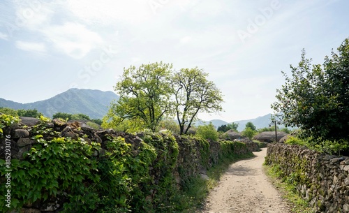 © sephoto, Obraz premium 연두색 감 잎이 아름다운 순천낙안민속마을의 5월 풍경