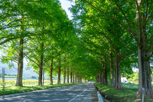 Obraz premium 新緑のメタセコイア並木道
