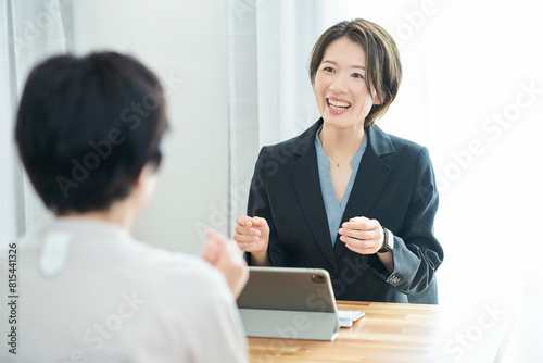 Fototapeta premium 私服の女性に説明するスーツ姿の女性