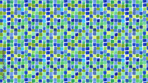 © shigotono, Fototapeta premium 青いタイルのテクスチャ背景