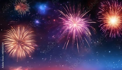 Fototapeta premium 宇宙を背景に打ち上げられた花火のイラスト