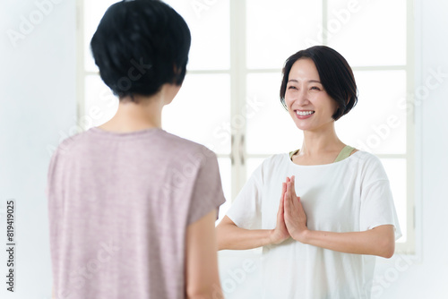 Fototapeta premium スポーツジムでヨガをするミドル女性