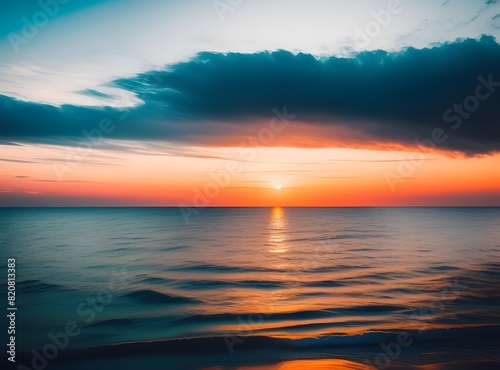 Obraz premium 海の上に浮かぶ赤い空と太陽のイラスト