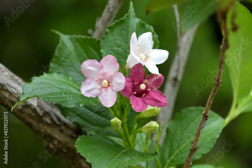 Obraz premium 白から赤に色が変わるハコネウツギの花