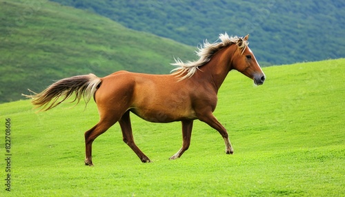 Obraz premium 野生の自由を馳せる風になびく馬の風格