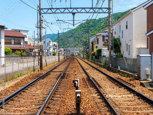 Obraz premium 住宅密集地を通る能勢電鉄妙見線