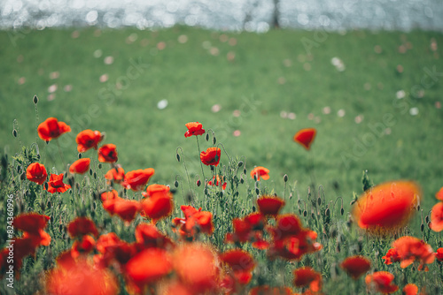 Fototapeta premium 양귀비가 보이는 풍경