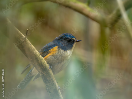 Obraz premium 深い藪の奥でリラックスしているルリビタキの雄