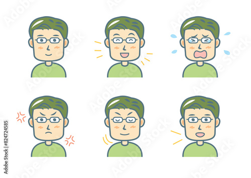 Fototapeta premium 色々な表情をする男性のイラストセット