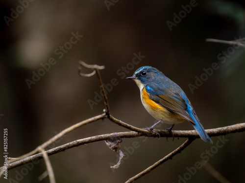 Fototapeta premium 森の中で枝に留まっているルリビタキの雄