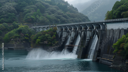 © bephoto, Fototapeta premium 放水中のダム 豪雨