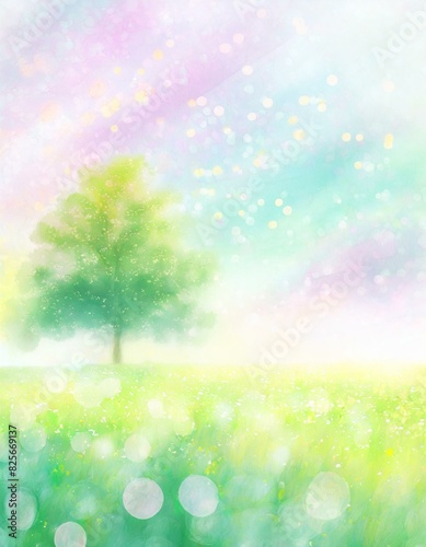© Bambi and Sunny, Obraz premium 美しい煌めく草原のイラスト背景