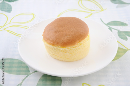 Fototapeta premium お皿にのせた スポンジケーキ ホットケーキ テーブルクロス