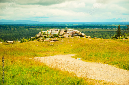 Obraz premium Пейзаж с камнем на фоне тайги