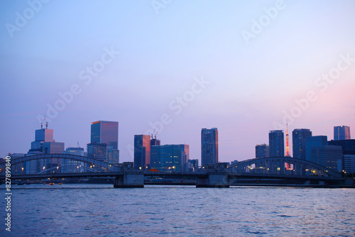Naklejka premium 東京都 隅田川の勝鬨橋と街並み