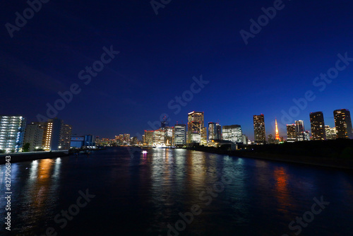 © Tozawa, Fototapeta premium 東京都 隅田川の築地大橋から見た街並み