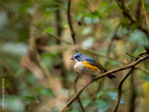 Obraz premium 深い藪の奥で静かに枝に留まっているルリビタキの雄