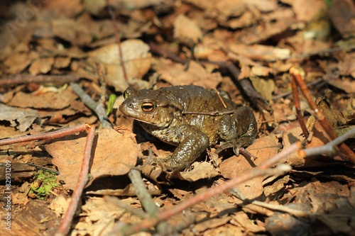 Naklejka premium Жаба в сухих листьях в лесу