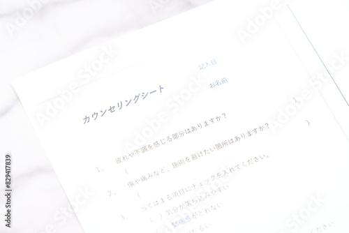 Obraz premium エステサロンや美容サロンで受付の際に記入する「カウンセリングシート」