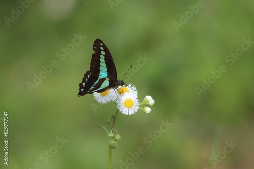 Obraz premium ハルジオンにやってきたアオスジアゲハ