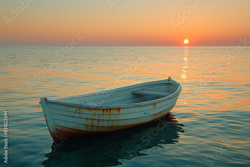 © CrioStudio, Fototapeta premium 湖畔に浮かぶ小さなボート